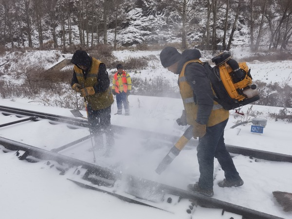 人民網(wǎng)哈爾濱11月6日電 (尚城)11月6日,黑龍江省迎來暴雪、雨雪冰凍、大風天氣,此次過程影響范圍廣、降雪量大,局地降水量可能接近或突破歷史同期極值。中國鐵路哈爾濱局集團有限公司第一時間對受降雪影響主要鐵路區(qū)段啟動預警,調集大功率風力除雪機、重型軌道車、除雪車輛、熱滑除冰列車等設備參與除雪工作。為確保旅客列車和人民群眾出行絕對安全,哈鐵有序開展行車調度、清冰除雪、設備巡檢、旅客疏導、安全防護等應急處置工作,根據(jù)雪情科學調整運輸方案,盡最大努力減少惡劣天氣對運輸秩序的影響。